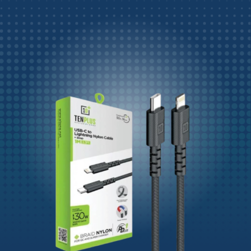 ذو مواصفات وجودة عالية من ماركة تن بلس، مصنوع من مواد عالية الجودة حيث أنه مغطى بمادة تُعطيه قوة وتحمل وتضيف مرونة على كيبل الشحن السريع.